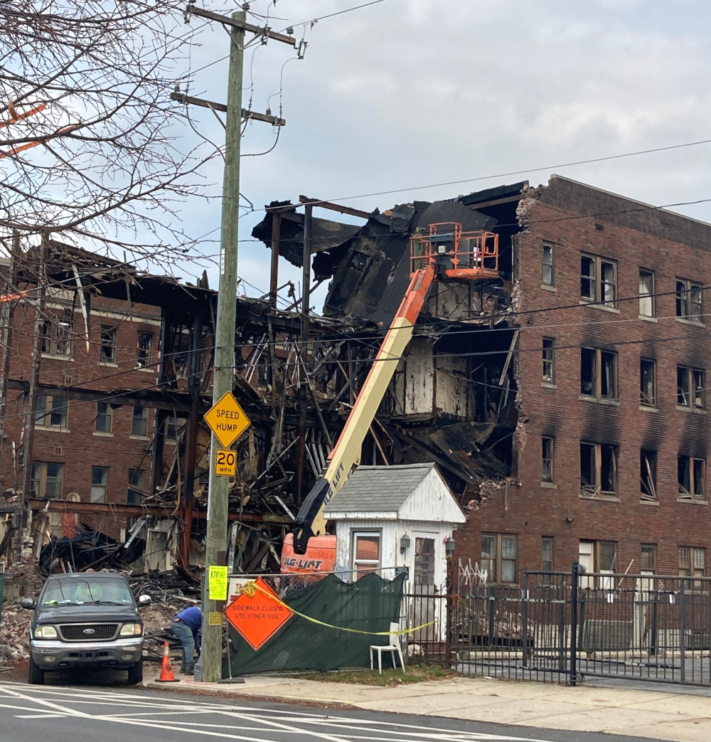 The structure was heavily damaged in the fire and was considered in an imminent danger of collapse, according to the Department of Licenses and Inspections. A zoning permit to demolish all the structures on the site was issued on Nov. 10.