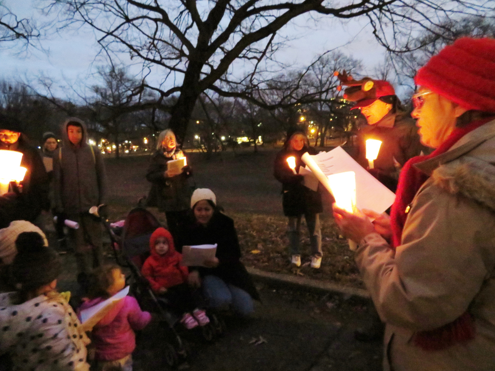 Community voices will come together for candlelit caroling at dusk in Clark Park (45th and Regent) on Sunday, Dec. 21. This West Philadelphia family-friendly tradition of many decades comes with songsheets of familiar carols  – and mulled cider! Meet at 5 p.m. at the shed – with the Christmas tree on top. (Photos by Anthony West)