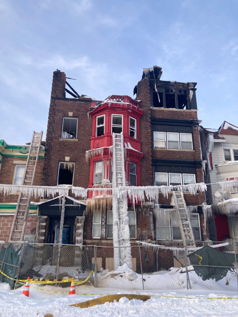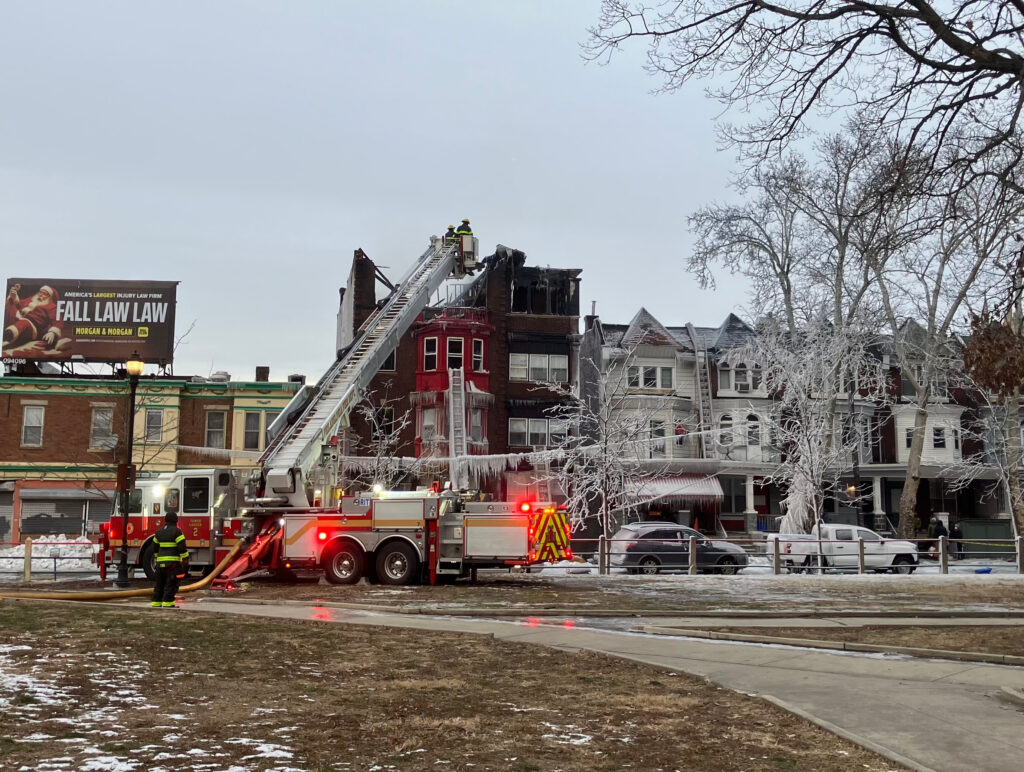 Firefighters were still at 52nd and Delancey/52nd and Pine putting out the fire as of 9 a.m. on Saturday. The water was running down these streets and quickly freezing this morning, which created dangerous icy conditions. Please avoid these areas.