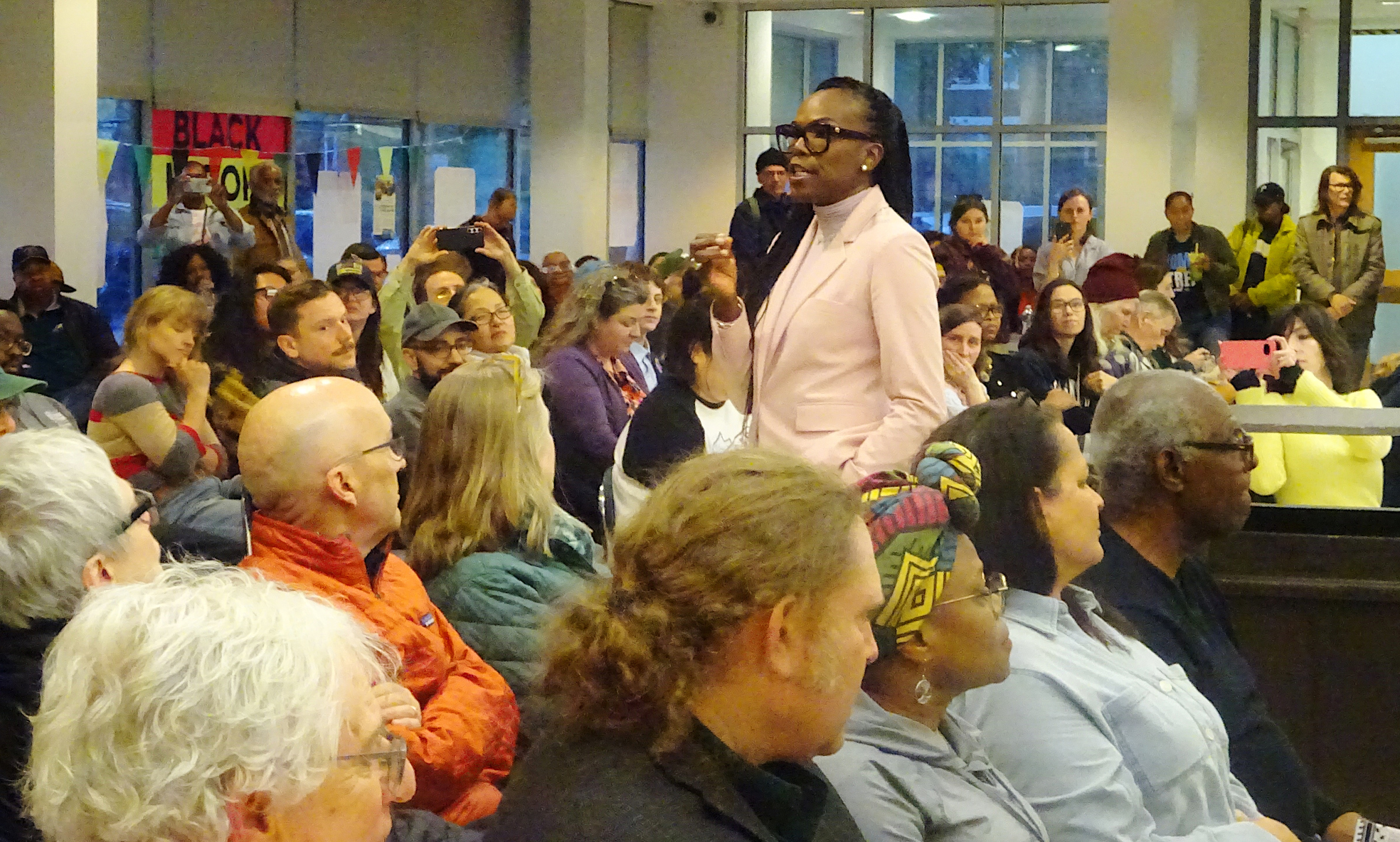 Dr. Ala Stanford, a candidate for the 3rd Congressional District Democratic nomination, speaking at the West Philly forum on April 20, 2026. (Photo by Tony West)